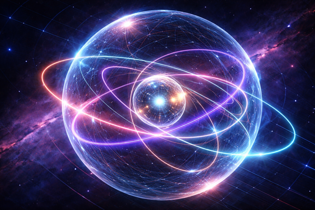 A tracing point attached to the inner sphere no longer generates a flat curve. It produces a spatial trajectory — a volumetric path evolving through three-dimensional space.