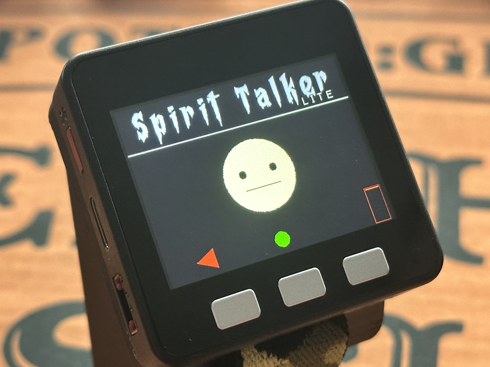 Another mini-app that turns the Spirit Talker Liteโs screen into a responsive, animated face. It renders smooth, colour-coded expressions โ happy, sad, angry, surprised, sceptical, scared, love, and more โ that update in real time via the Tusi Couple. The visuals follow subtle electrical fluctuations (Rem-Pod style), so the โmoodโ you see reflects what the device is sensing in the environment. Everything runs fully offline with sprite-based animation for a fluid, eye-catching display in the field.